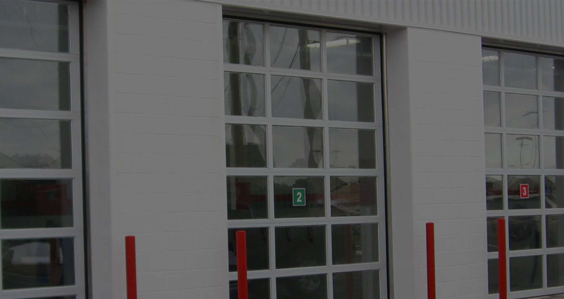 Portes de garage commerciales avec fenêtres panoramiques, style station-service...